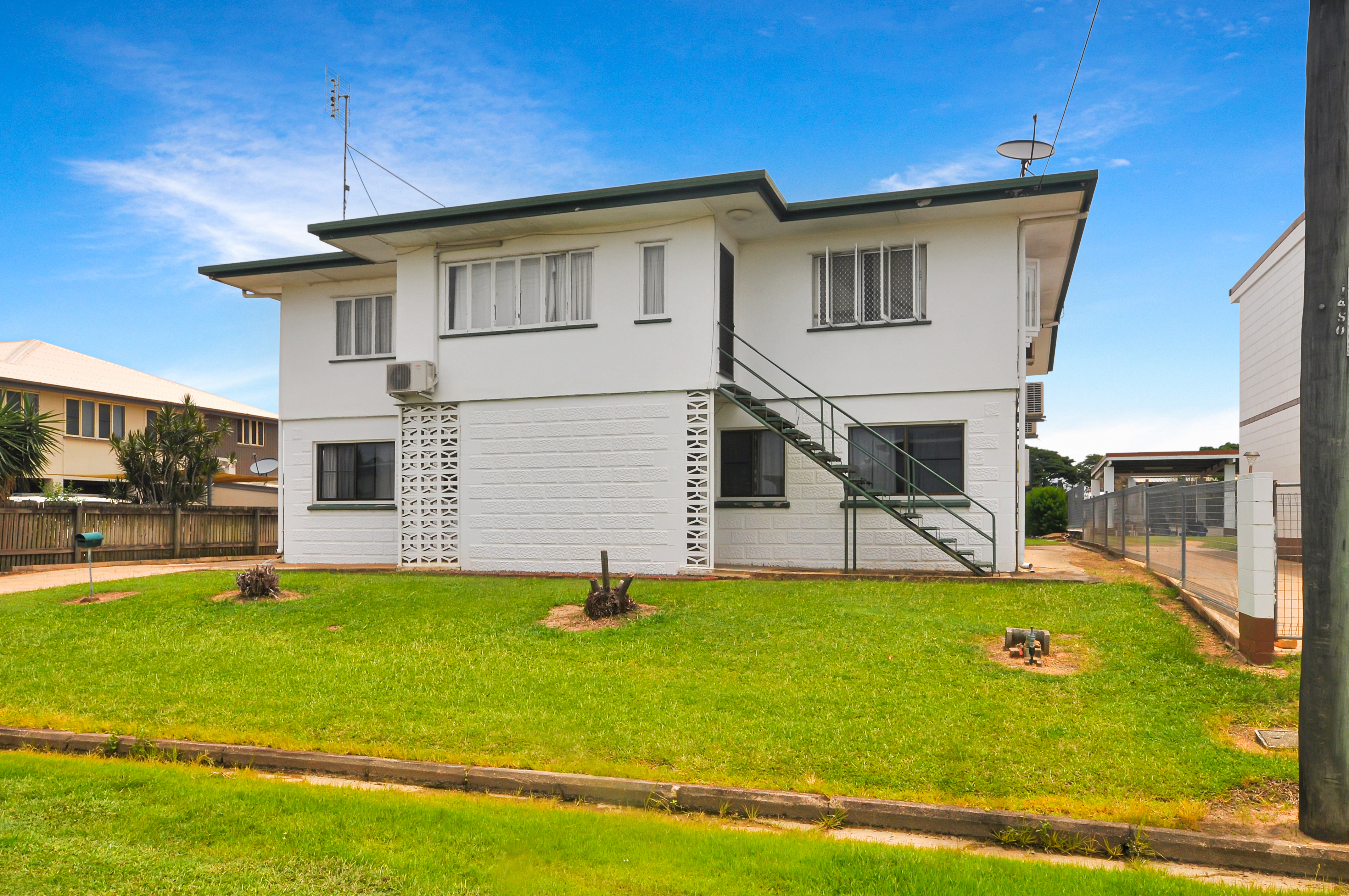 Downstairs is of block construction and has had extensive renovations with new tiles, kitchen, bathroom, air con done some years ago. The downstairs units feature 2 large bedrooms, and plenty of living space. There is a private entertaining area for each tenant.