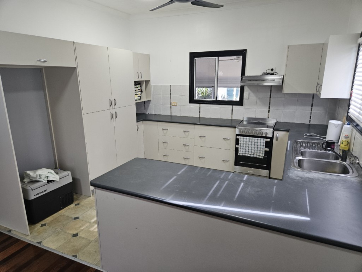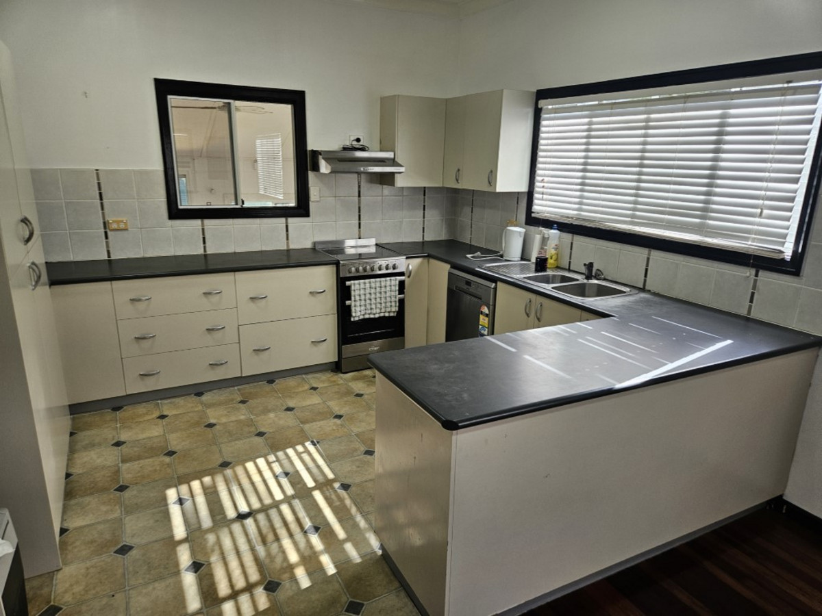 The open plan living area is airconditioned and has a neat kitchen with dishwasher and vinyl floorcovering and lounge area with polished timber floor.