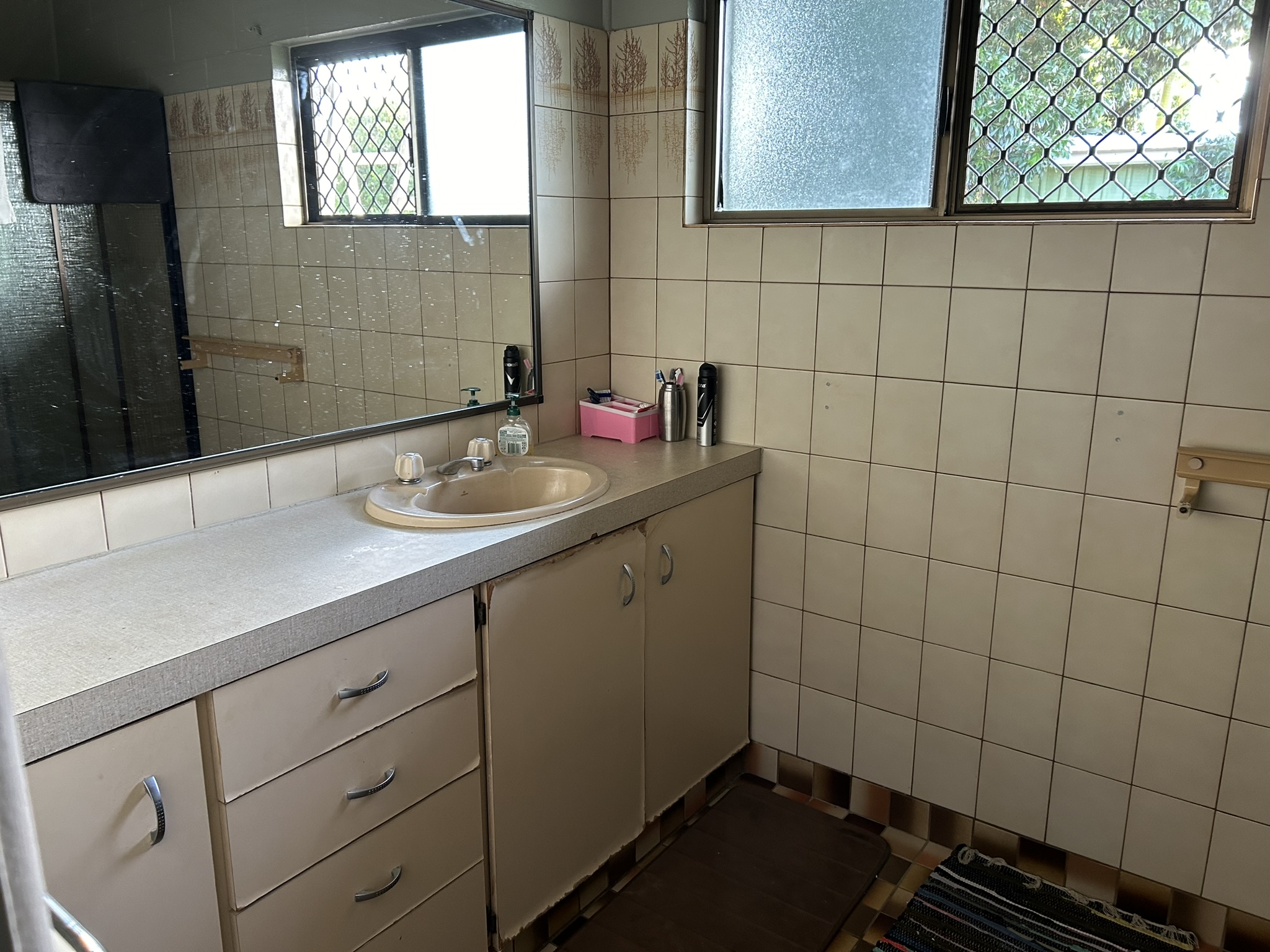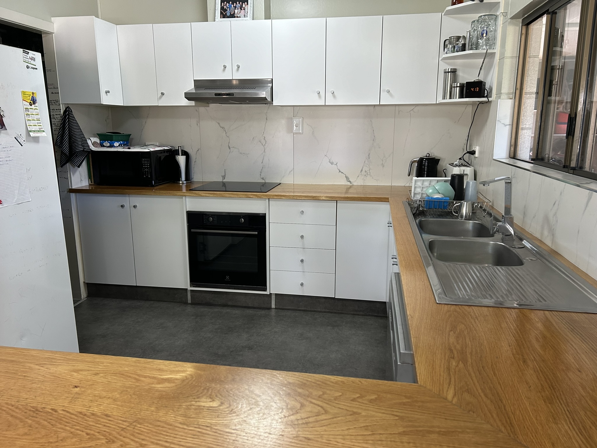 The living area has easy to maintain two pack vinyl flooring with tiles in the kitchen.