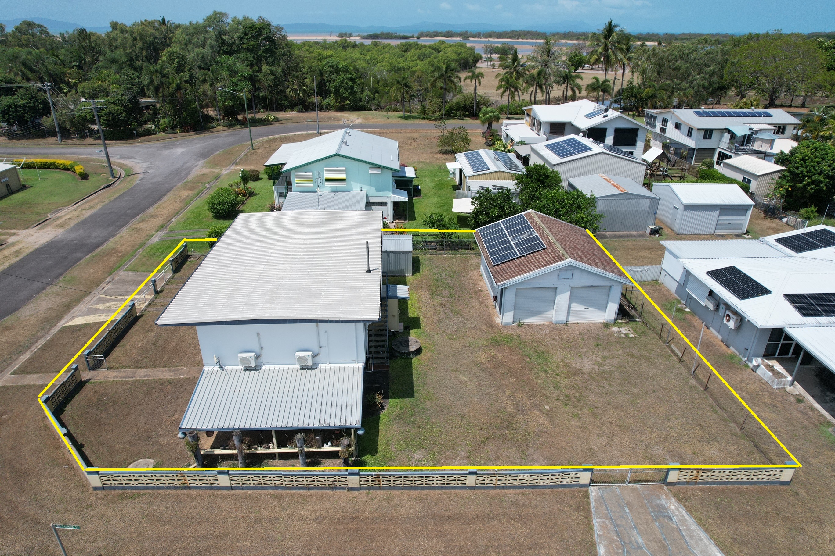 The property is surrounded by a fully fenced yard, presenting a blank slate for landscaping, complete with a bore and pump for maintenance. Additionally, a solid 6 x 8m powered block shed at the rear corner of the property features its own entry gates and is equipped with solar panels that contribute to reduced energy costs.
