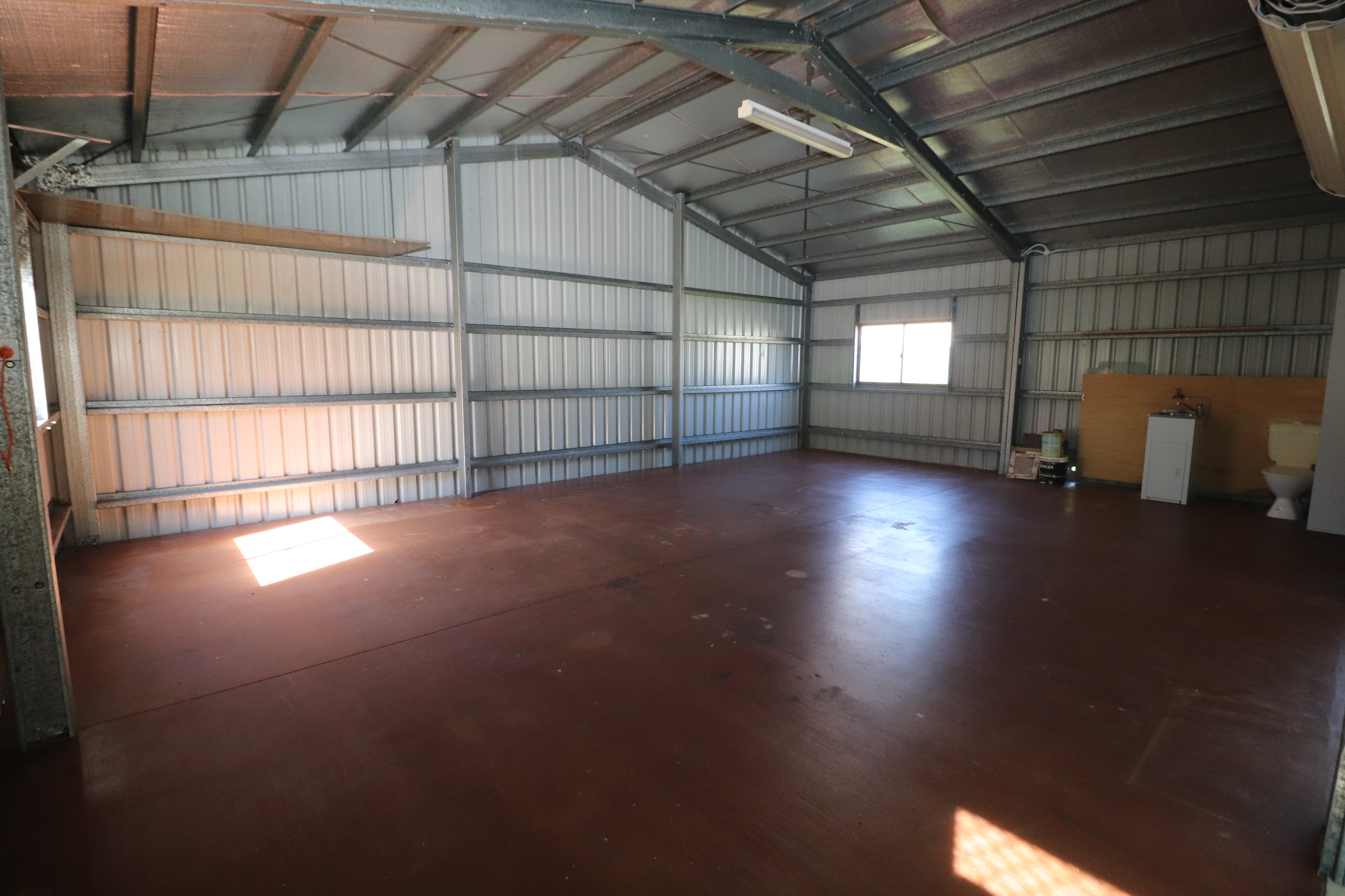 The property also boasts a large 16m x 9m shed that includes a 9m x 7m two-door lockable garage with a second toilet and laundry. Adjacent to this is a fully secure 9m x 9m entertainment area, which acts as a perfect bridge between the cozy indoors and the generous outdoors, ideal for hosting gatherings or simply enjoying the serene environment.